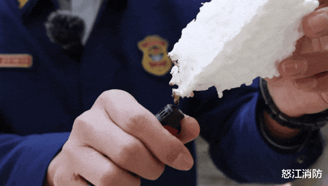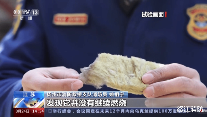 消防员将岩棉、泡沫分别接触发生短路的电线,也发现了相似结果。