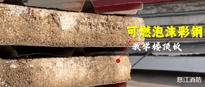 教学楼顶板使用可燃泡沫彩钢。图源:新京报