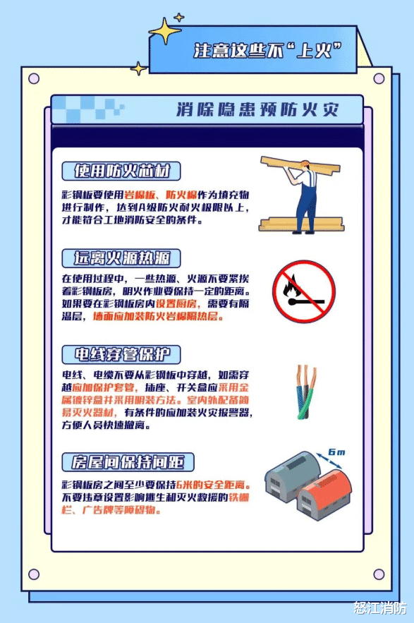 现实中,一旦发生火灾,岩棉、矿棉等阻燃材料填充的彩钢板能够减缓火势蔓延,为火灾初期扑救、人员自救逃生赢得时间,而易燃材料则相反。