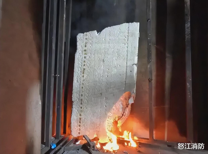 相比岩棉、矿棉等阻燃材质,泡沫的燃点低,一旦起火,火势更容易蔓延。那么,泡沫夹芯彩钢板燃烧有多危险?为了直观展示泡沫夹芯彩钢板的消防隐患,在安全条件下,消防员分别对泡沫、岩棉两种材料进行点燃试验→